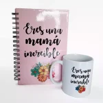 Kit de regalo personalizado agenda pasta dura 1/2 carta + Taza